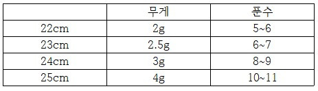 찌톱을 찌에사용할수 있는 무게와 푼수입니다